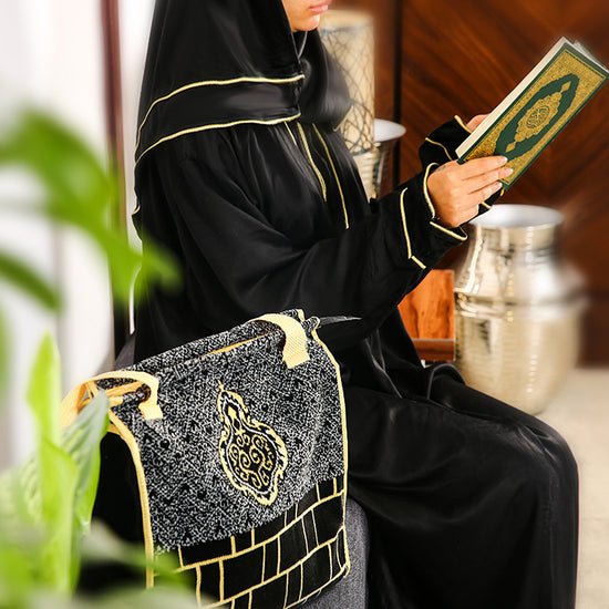 Experience elegance with Al Kaabah Wall prayer mat. Featuring black and gold design inspired by the Kaaba covering, it offers soft velvet texture, durable quality, and a luxurious feel for a peaceful prayer experience.