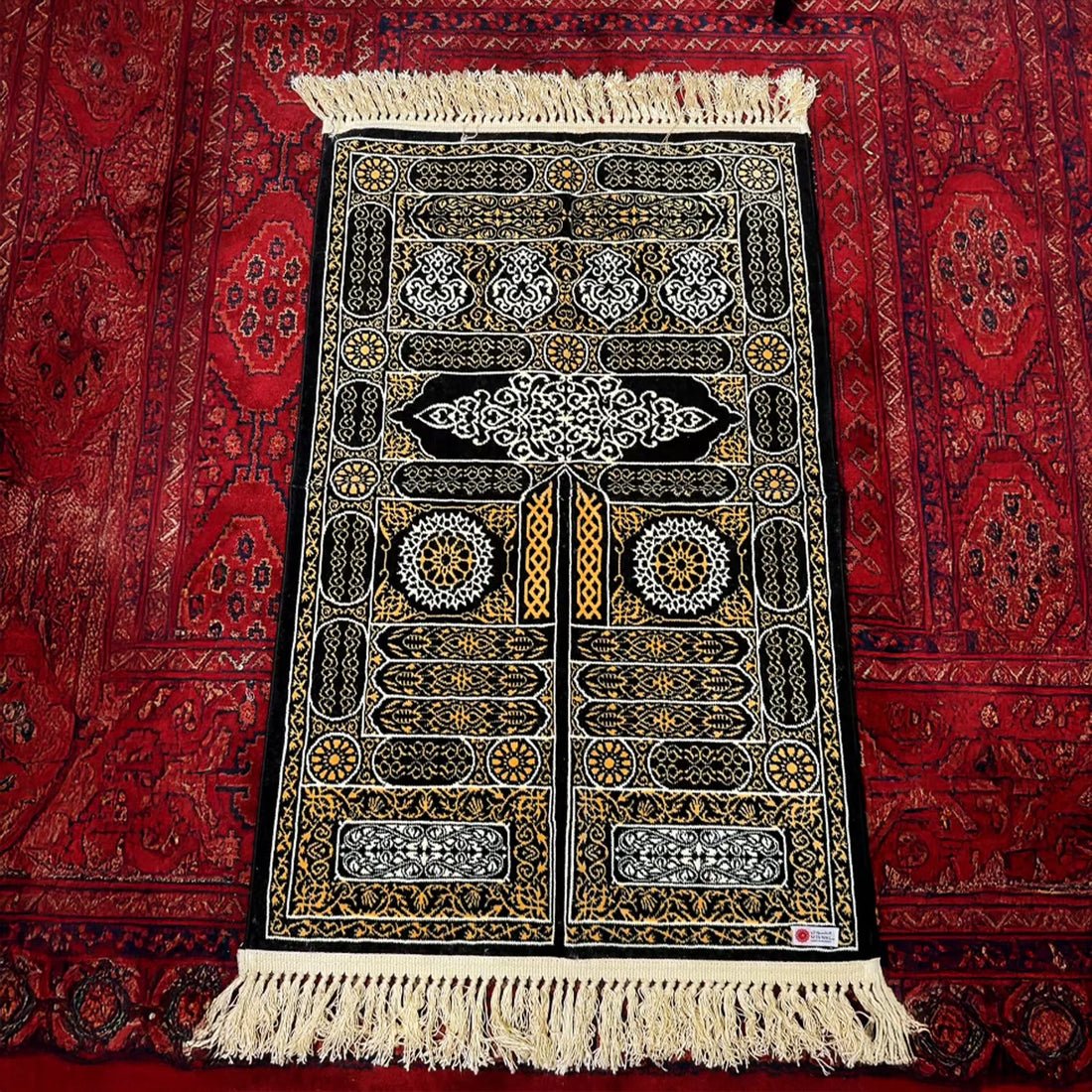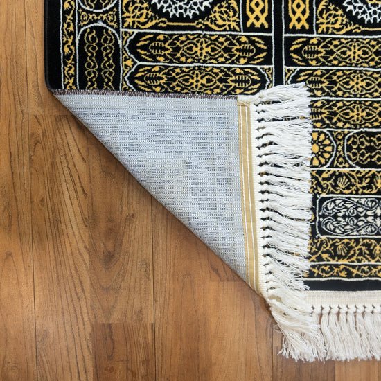 Elevate your prayer with Kabah Gate prayer mat. Featuring black velvet and golden Kaaba gate design, it offers soft comfort, durable quality, and a luxurious feel, perfect for daily worship or gifting.