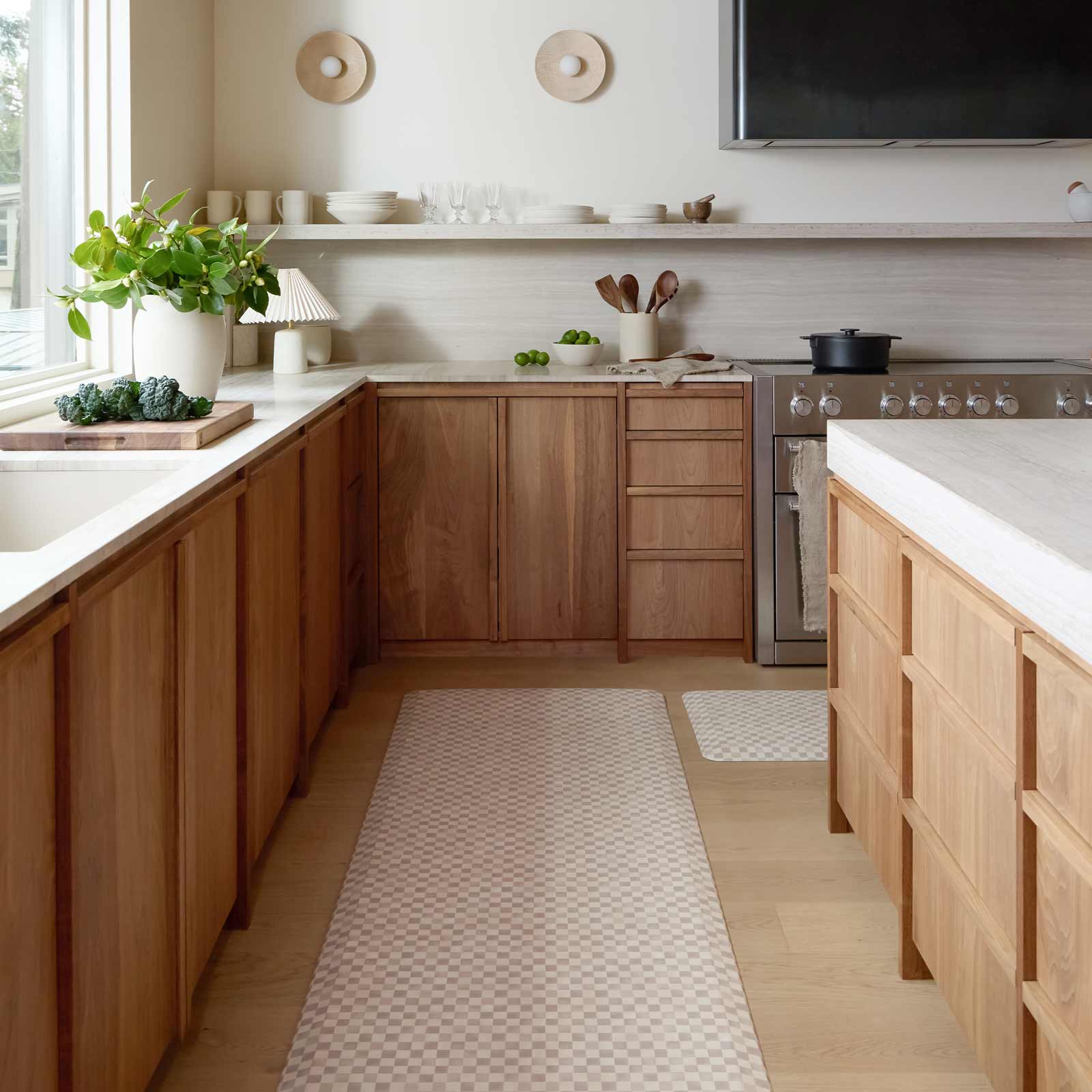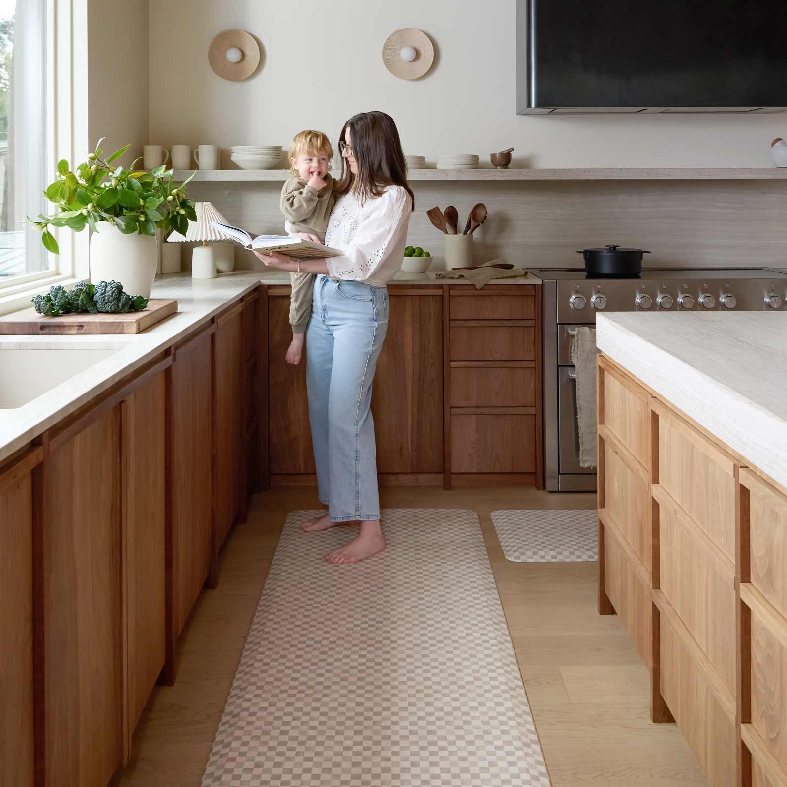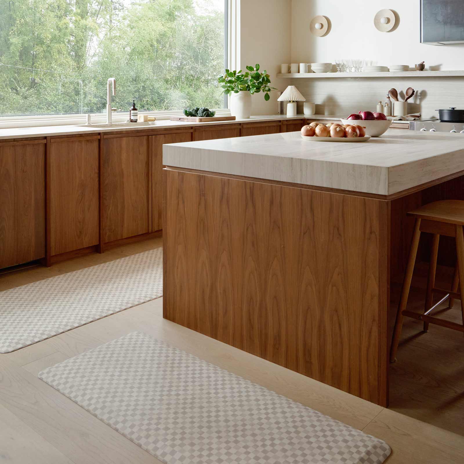 Feature Details Product Name Nama Standing Mat Checker Type Anti-Fatigue Standing Mat Material High-density ergonomic foam Thickness 3/4 inch Surface Printed wipe-clean top Backing Anti-slip base Design Watercolor checker pattern Sizes Available 22×36, 22×54, 22×72, 30×72, 30×108 Suitable For Kitchen, office, laundry, standing desks