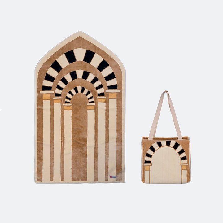 Experience elegance with Prophet Mosque Archs prayer mat. Inspired by Madina Mosque arches, it features soft velvet fabric, detailed design, and durable quality, providing comfort and a spiritually uplifting prayer experience.